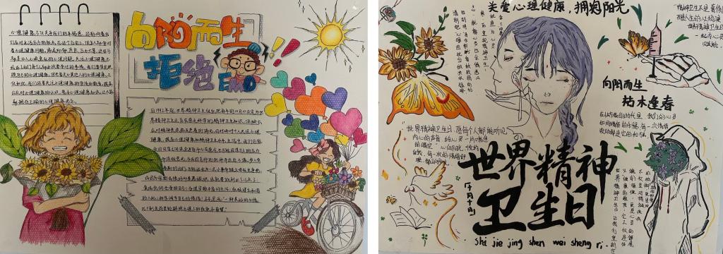 为激发学生参与心理健康教育的主动性与创造力,学院举办“心向阳光,悦纳自我”心理健康手抄报评选活动,鼓励学生以画笔为媒介,将心理健康知识与自我感悟融入作品。学院共收到作品150余幅。学生结合专业特色创作:有的以 “催化剂”喻“积极心态”,有的用漫画展现“自我接纳”,经“主题、内容、创意、美观”四维度评审,评选出一、二、三等奖12名,并在学院大厅展出。此次活动不仅为学生提供了展现才华的平台,更让心理健康知识通过艺术创作的形式深入人心,助力实现“以美育人、以美育心”的教育目标。